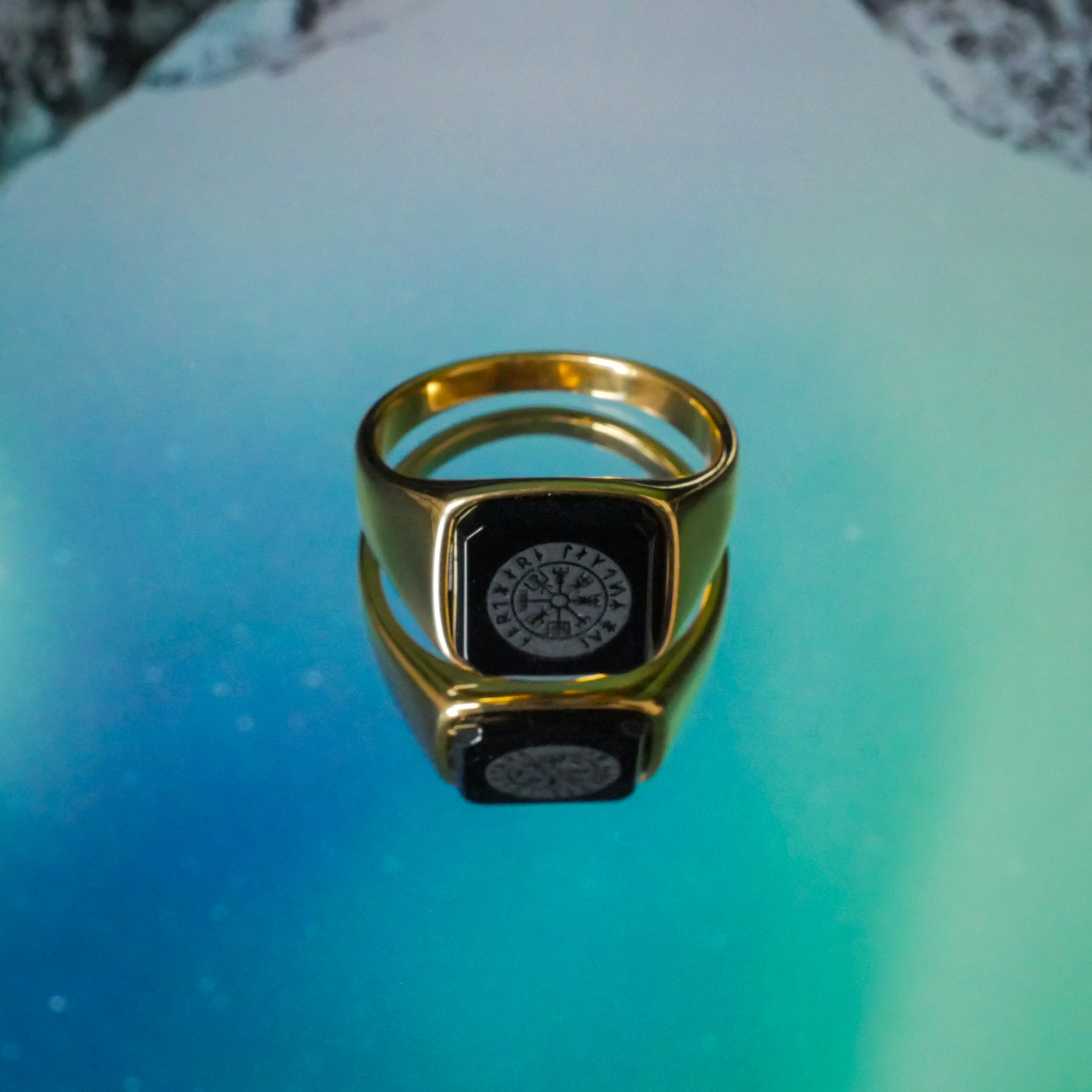 Black Onyx Vegvisir Signature - Gold-toned ringBlack Onyx Vegvisir Signature - Gold-toned ring