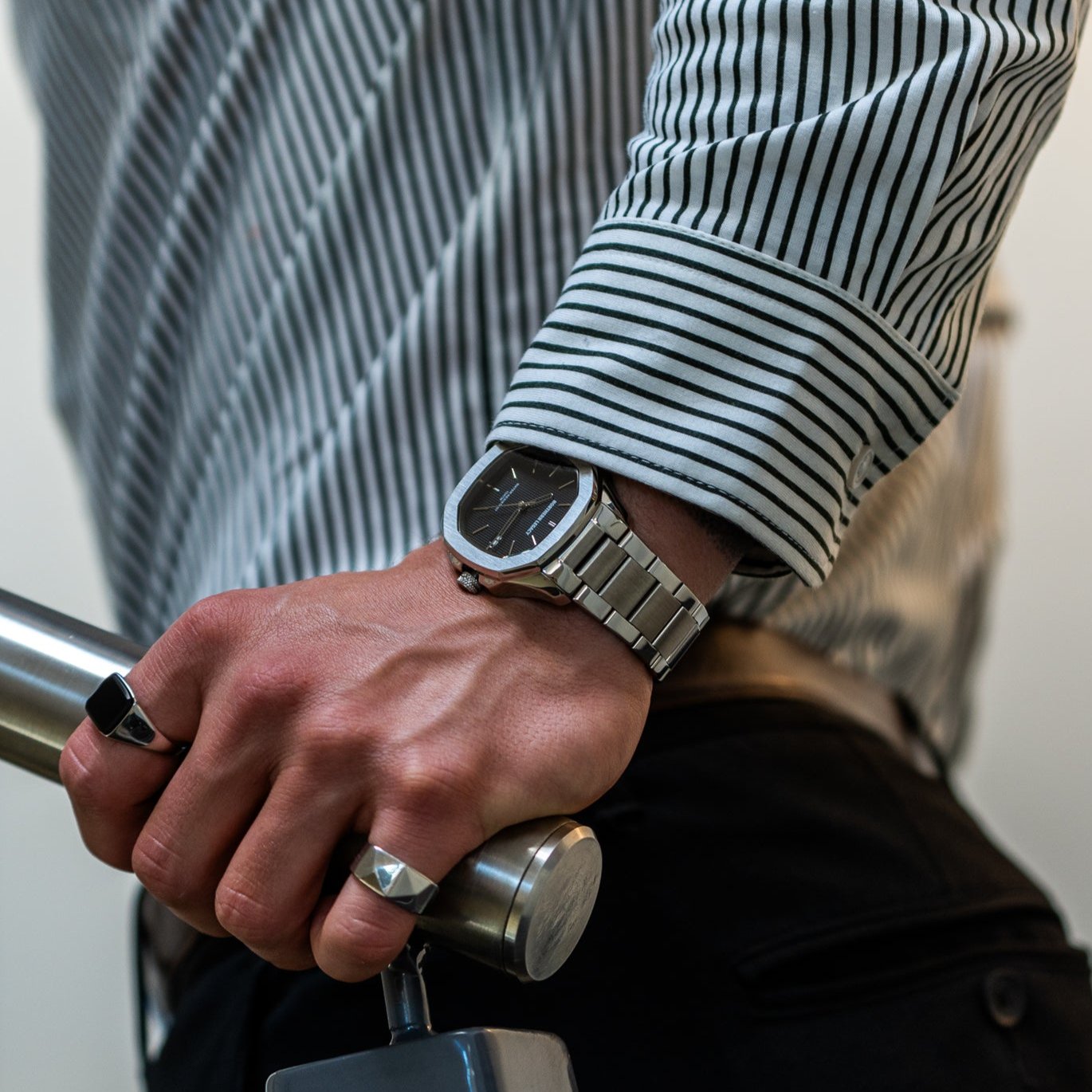 Stylish men's watch in silver and black